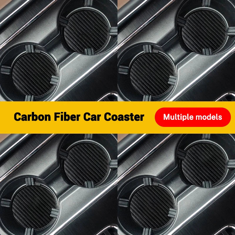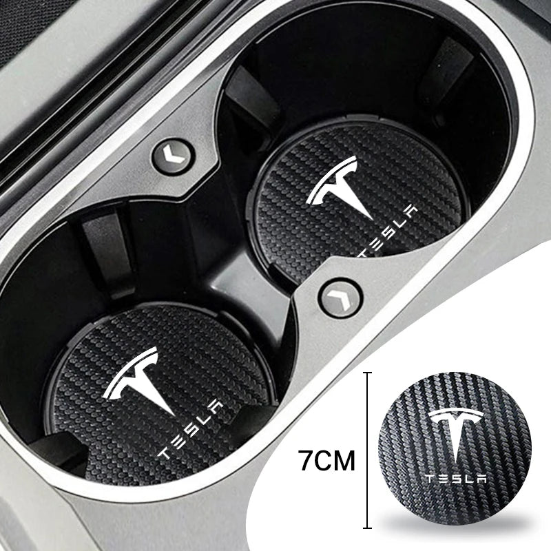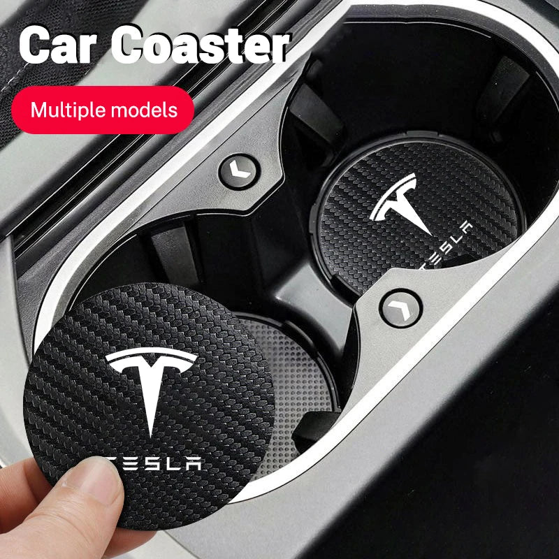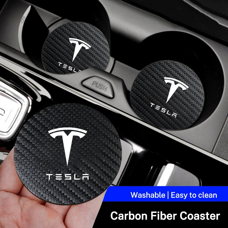2Pcs Car Logo Carbon Leather Water Cup Pad Anti-noise Coaster Mat For Tesla Model 3 Model S X Y Roadster SpaceX Auto Accessories