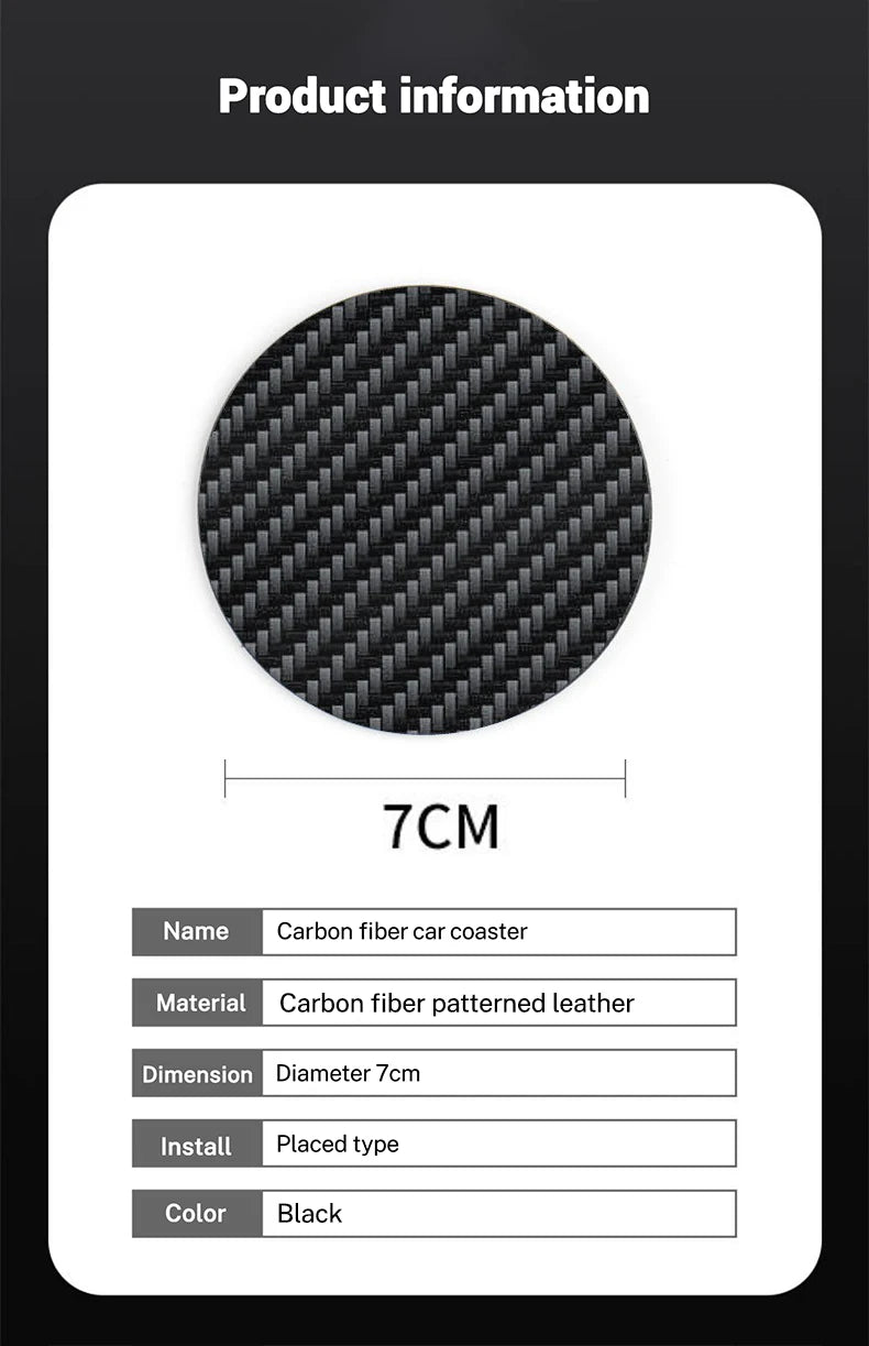 Our coasters are made to look sleek and professional in every environment, protecting your car and cup with its amazing design.