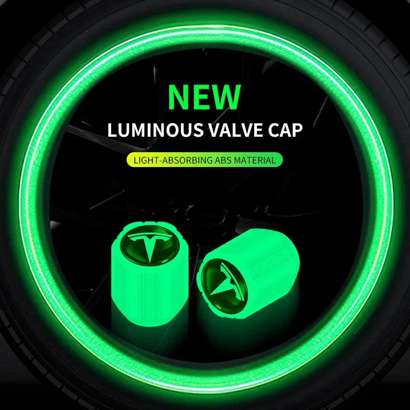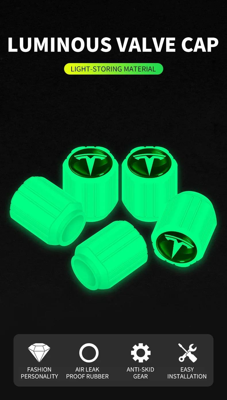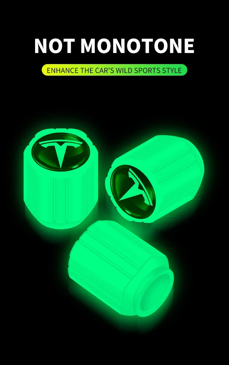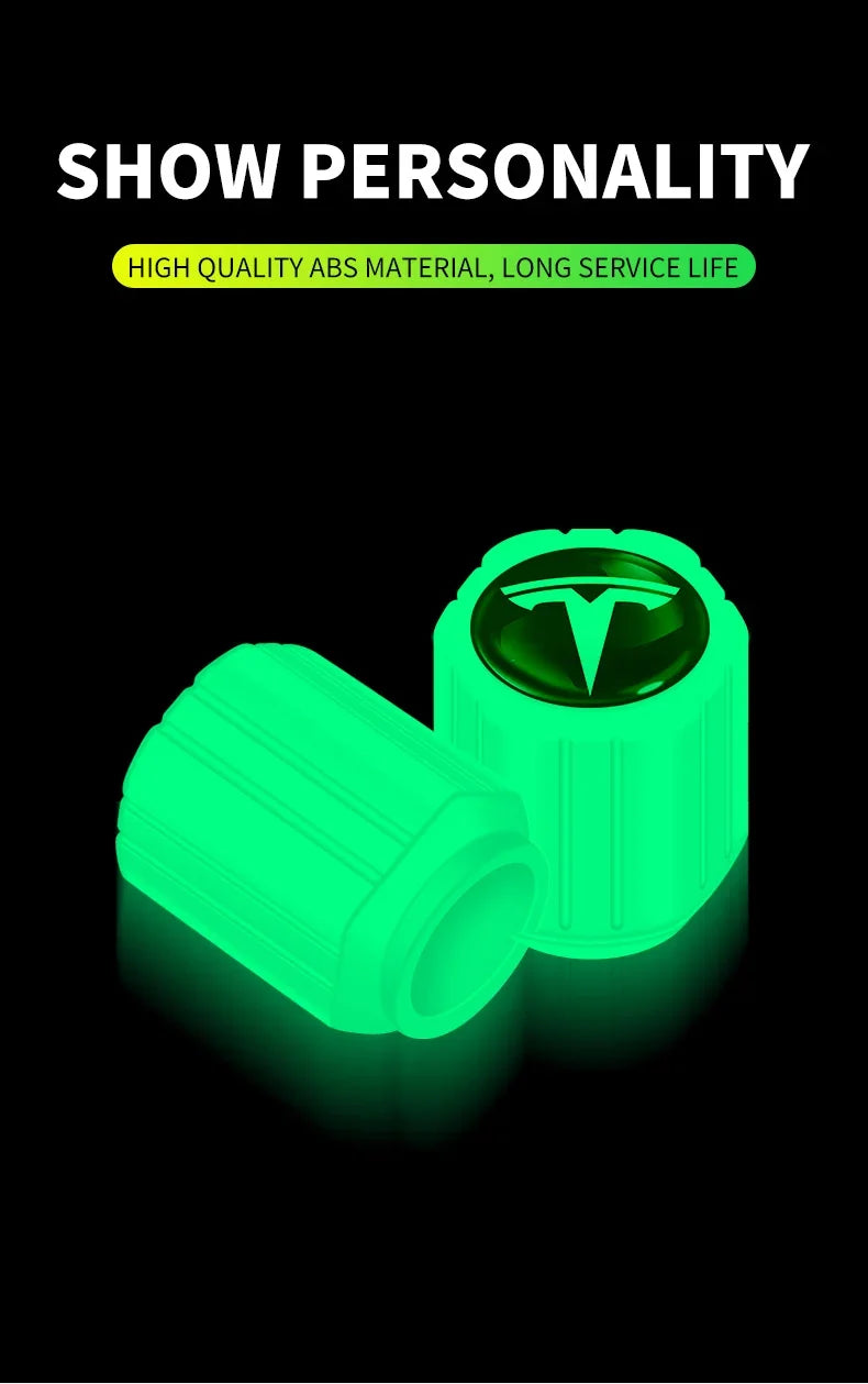 4Pcs Car Tire Valve Cap Luminous Valve Core Cover Universal For Tesla Logo Model 3 Model S Model X Model Y Roadster Bonina Coil
