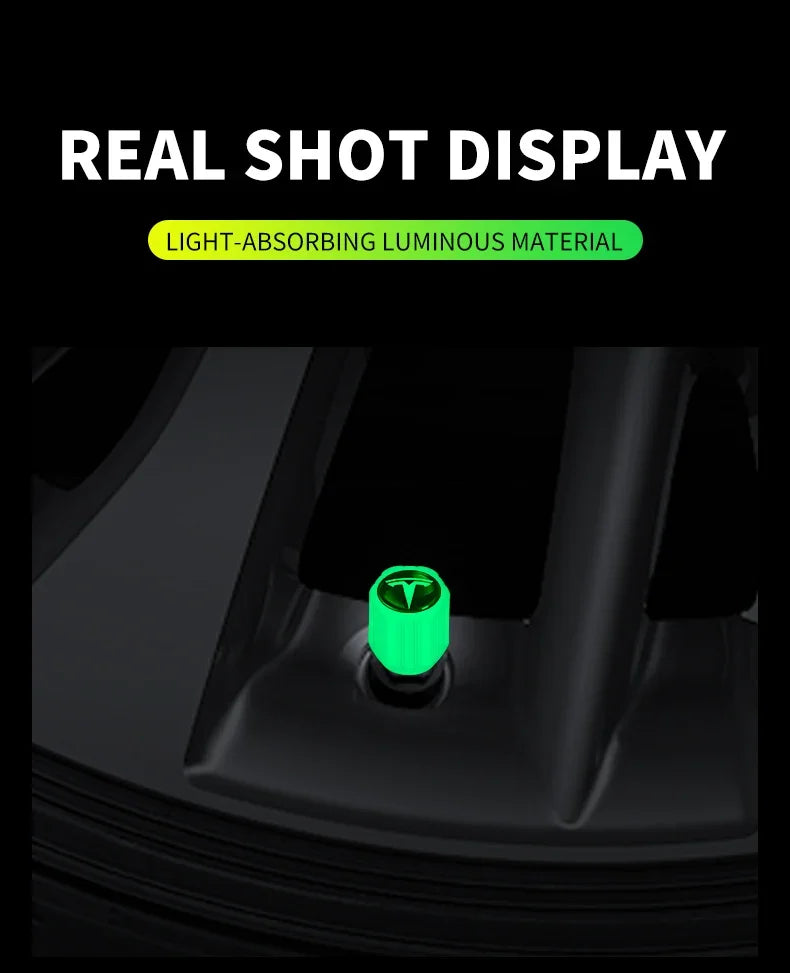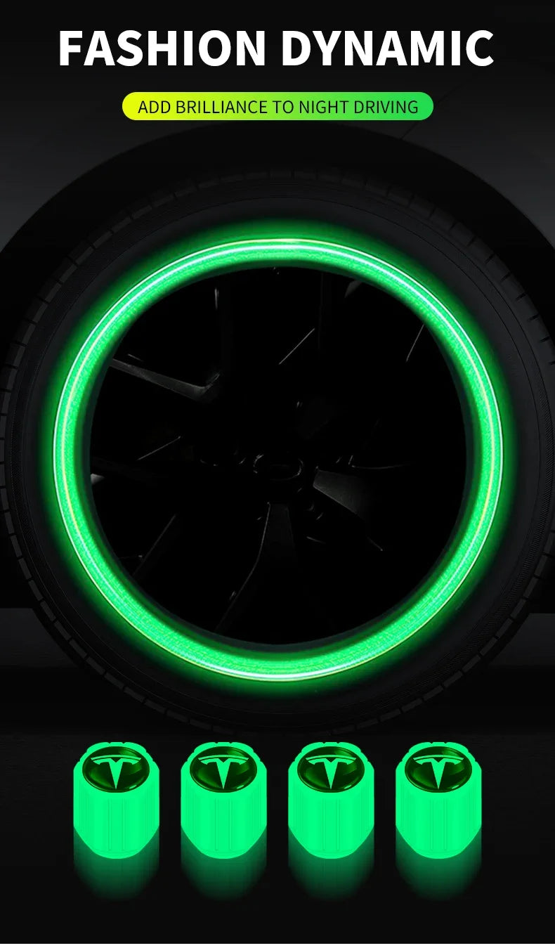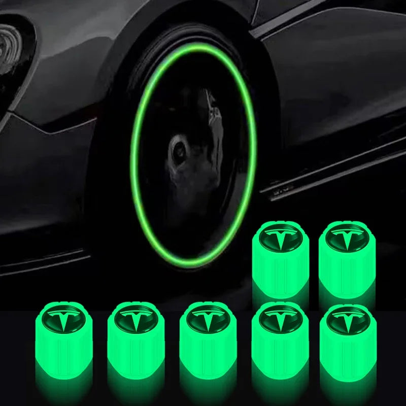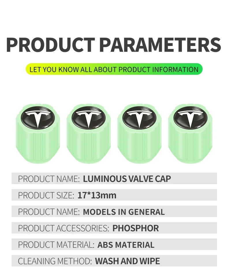4Pcs Car Tire Valve Cap Luminous Valve Core Cover Universal For Tesla Logo Model 3 Model S Model X Model Y Roadster Bonina Coil