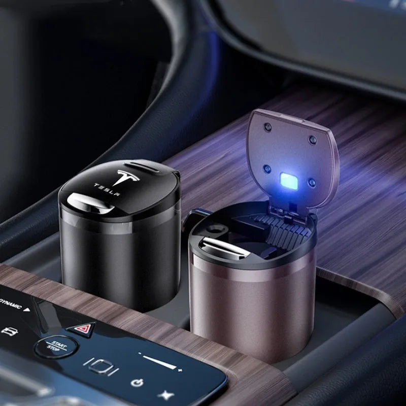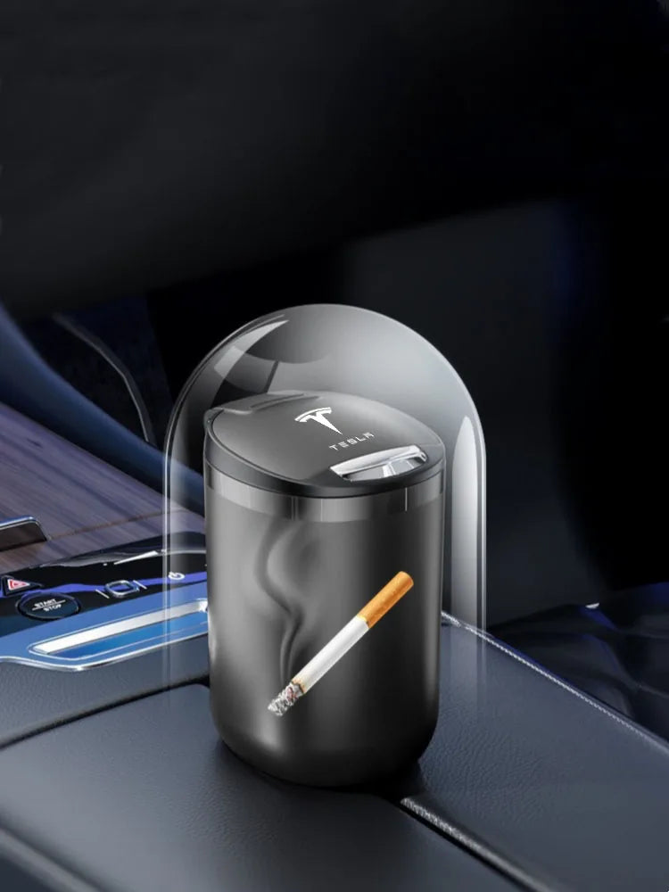 Car Ashtray Cigarette Butt Holder Container Accessories for Tesla Model 3 Model S Model X Y Portable One-Button Opening Car Ash