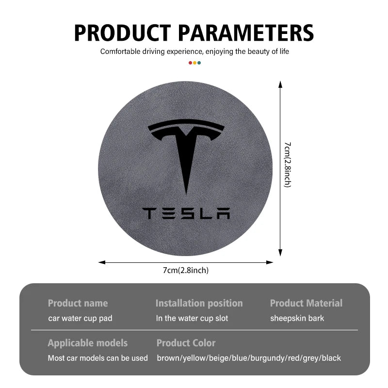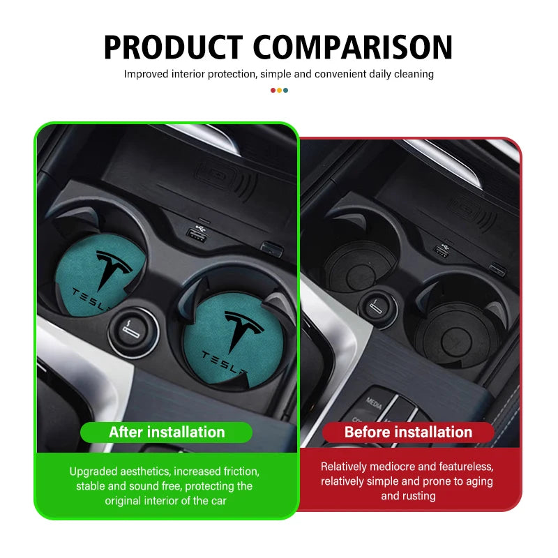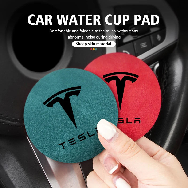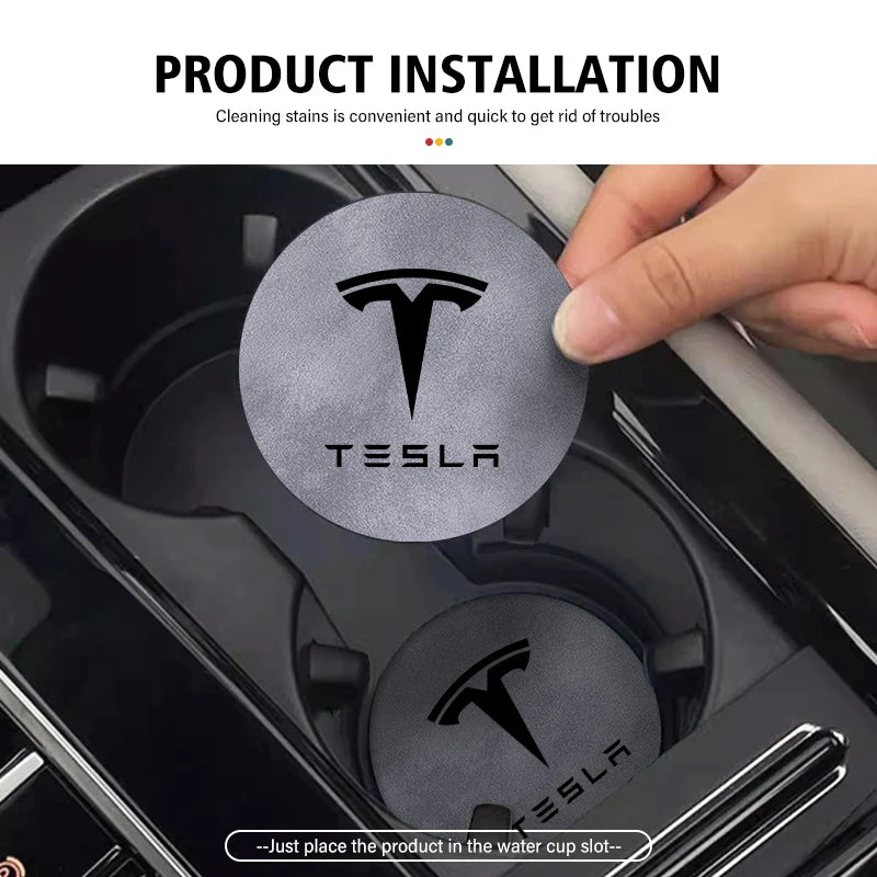 For Tesla Model 3 S Y X 2pcs Car Coaster Water Cup Bottle Holder Mat Anti-Slip Pad