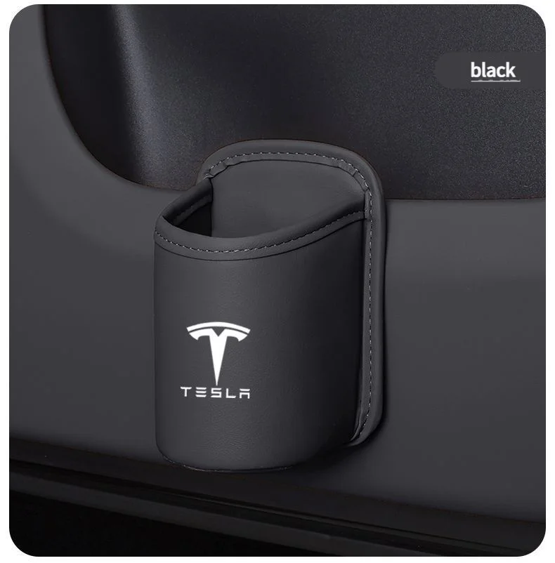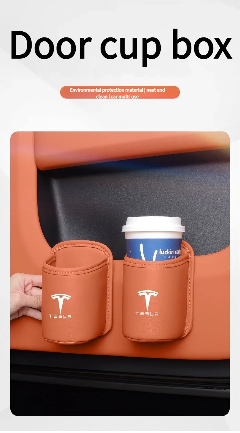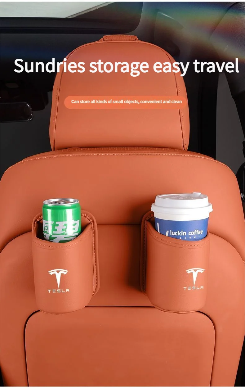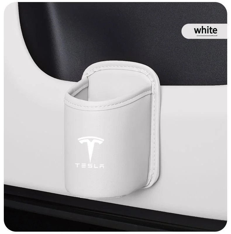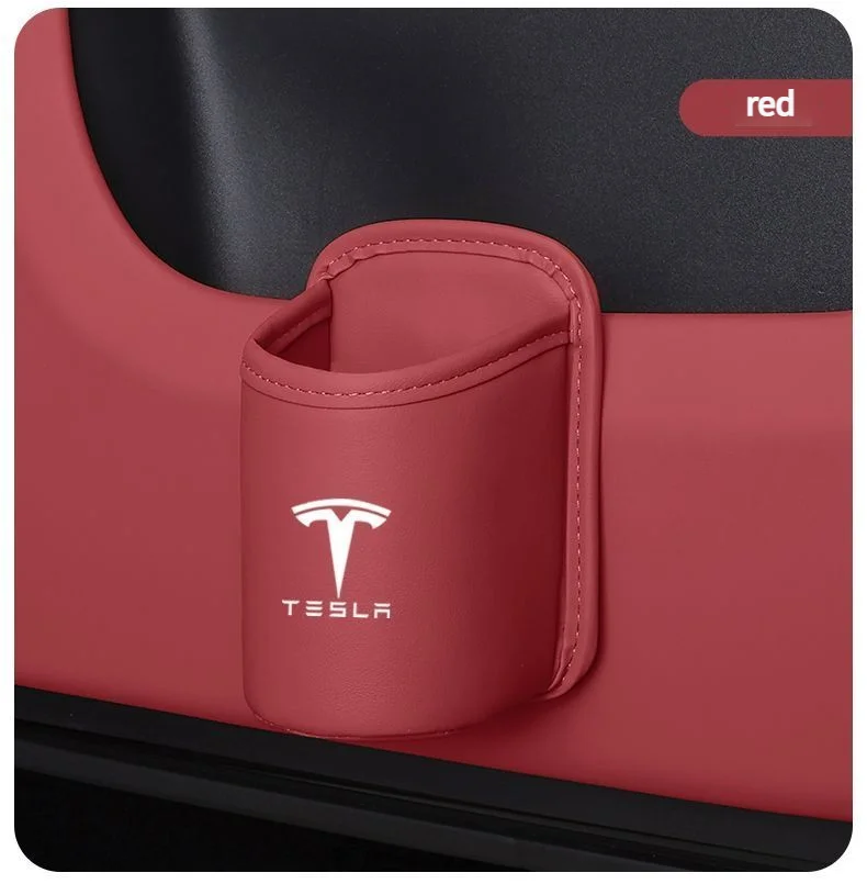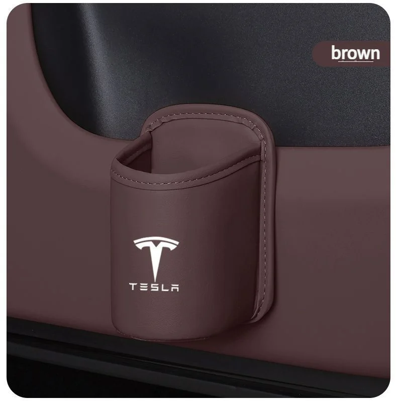 Leather Water Cup Storage Box By The Car Door And Beverage And On The Back Of The Seat For Tesla Model 3 Model S Model X Model Y