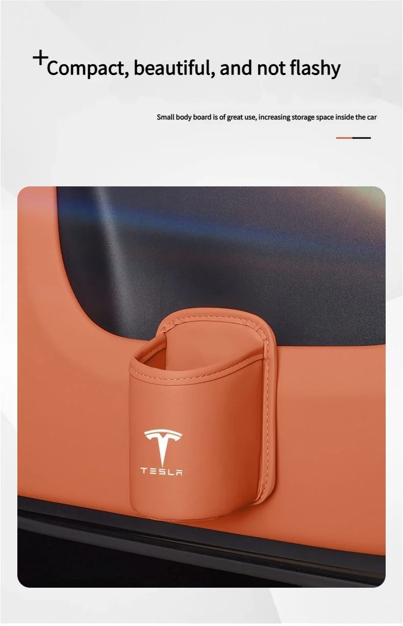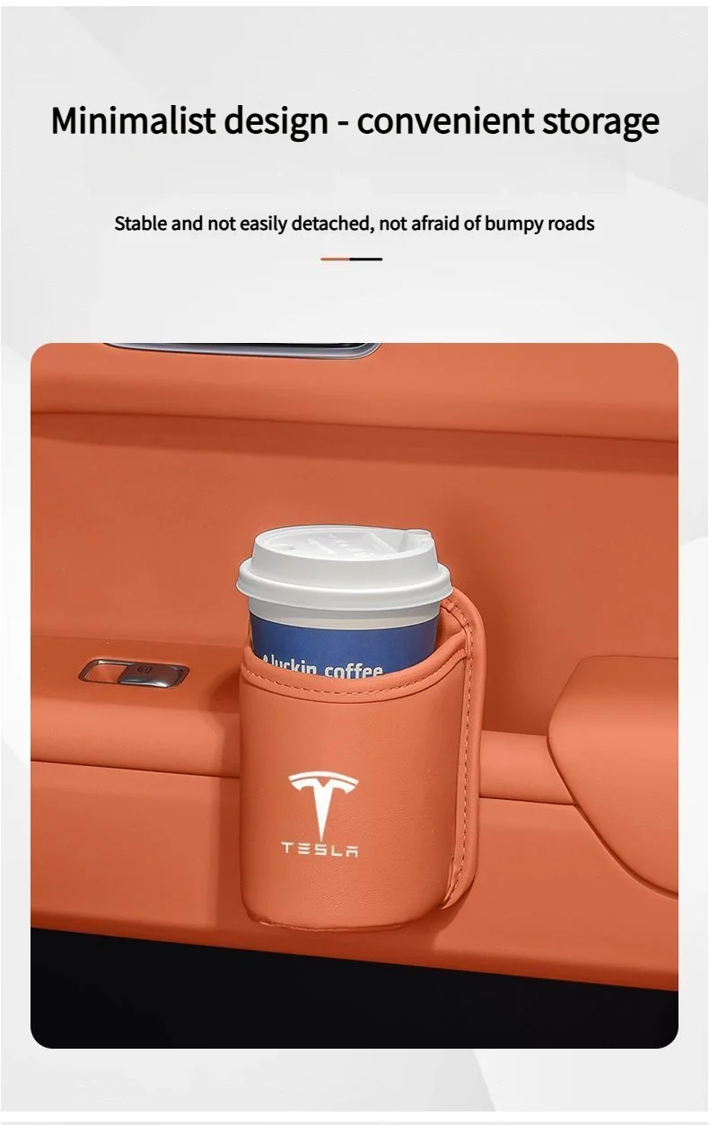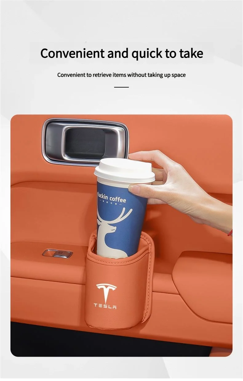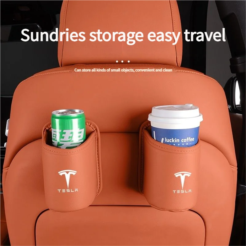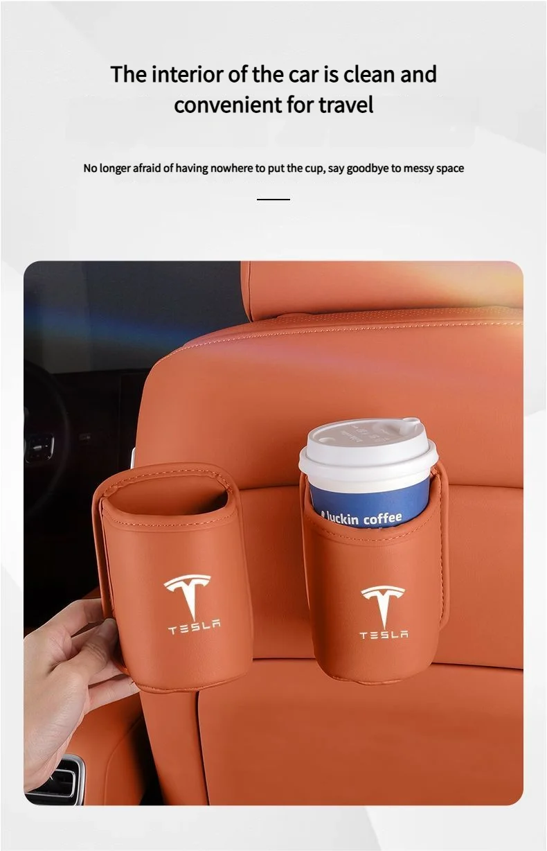 Leather Water Cup Storage Box By The Car Door And Beverage And On The Back Of The Seat For Tesla Model 3 Model S Model X Model Y