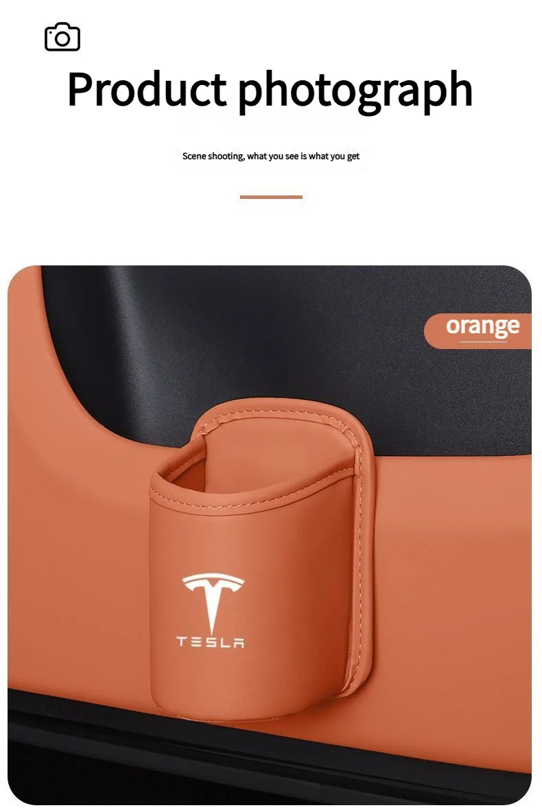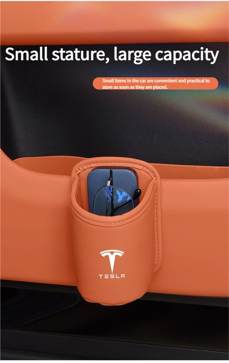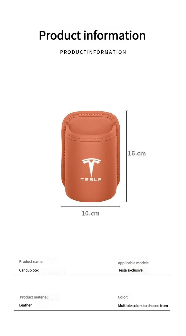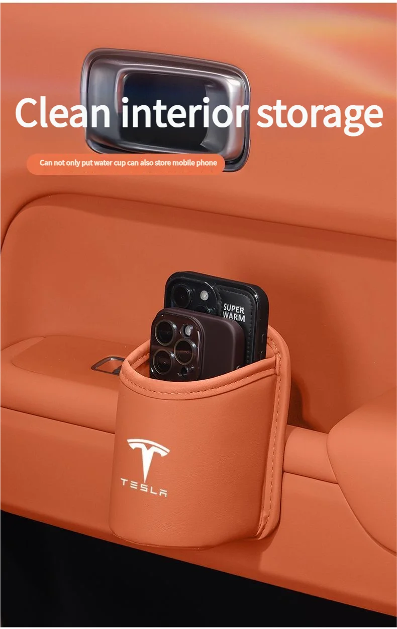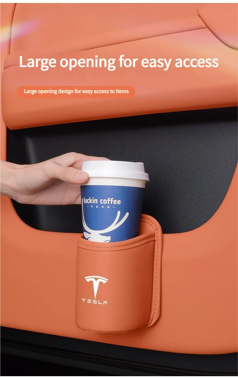 Leather Water Cup Storage Box By The Car Door And Beverage And On The Back Of The Seat For Tesla Model 3 Model S Model X Model Y