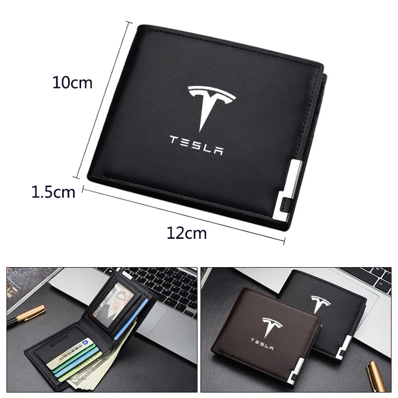 New Leather Car Short Men Wallet Purse With Card Holder License Accessories For Tesla Model 3 X Model Y Juniper Roadster SpaceX